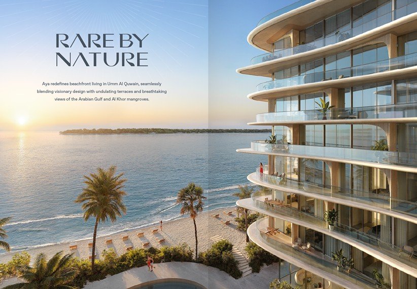 AYA redefines beachfront living, weaving visionary design with undulating terraces that frame the Arabian Gulf and Al Khor mangroves in breathtaking panoramas.